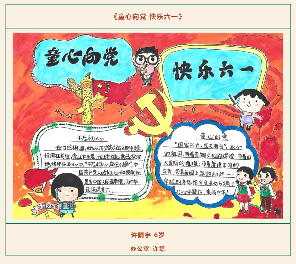 為推動(dòng)愛(ài)黨愛(ài)國(guó)情懷在員工家庭中落地生根,培育美好家風(fēng),構(gòu)建和諧融洽的親子關(guān)系,營(yíng)造文明健康的家庭氛圍,在“六一”國(guó)際兒童節(jié)來(lái)臨之際,公司工會(huì)開(kāi)展“童心向黨 快樂(lè)六一”親子繪畫(huà)活動(dòng)。